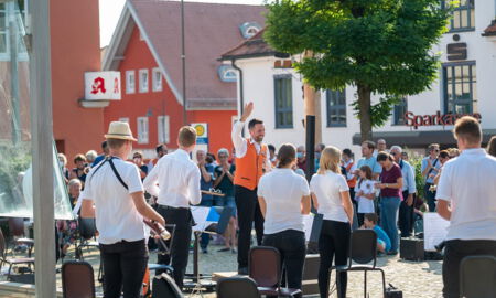 Hierbei haben wir ein buntes Programm aus traditioneller und moderner Unterhaltungsmusik dargeboten, um Tristesse und Monotonie die Bühne zu nehmen. Spätestens beim Eröffnungsstück des großen Blasorchesters ging damit buchstäblich die Sonne auf. Von Böhmen bis Beatles – für jeden war etwas dabei. Das Aufwirbeln von Luft durch kräftigen und anhaltenden Applaus war sowohl der Musiker zuletzt rar gesätes Brot als auch förderlich für die optimale Durchlüftung des Meringer Innenorts.